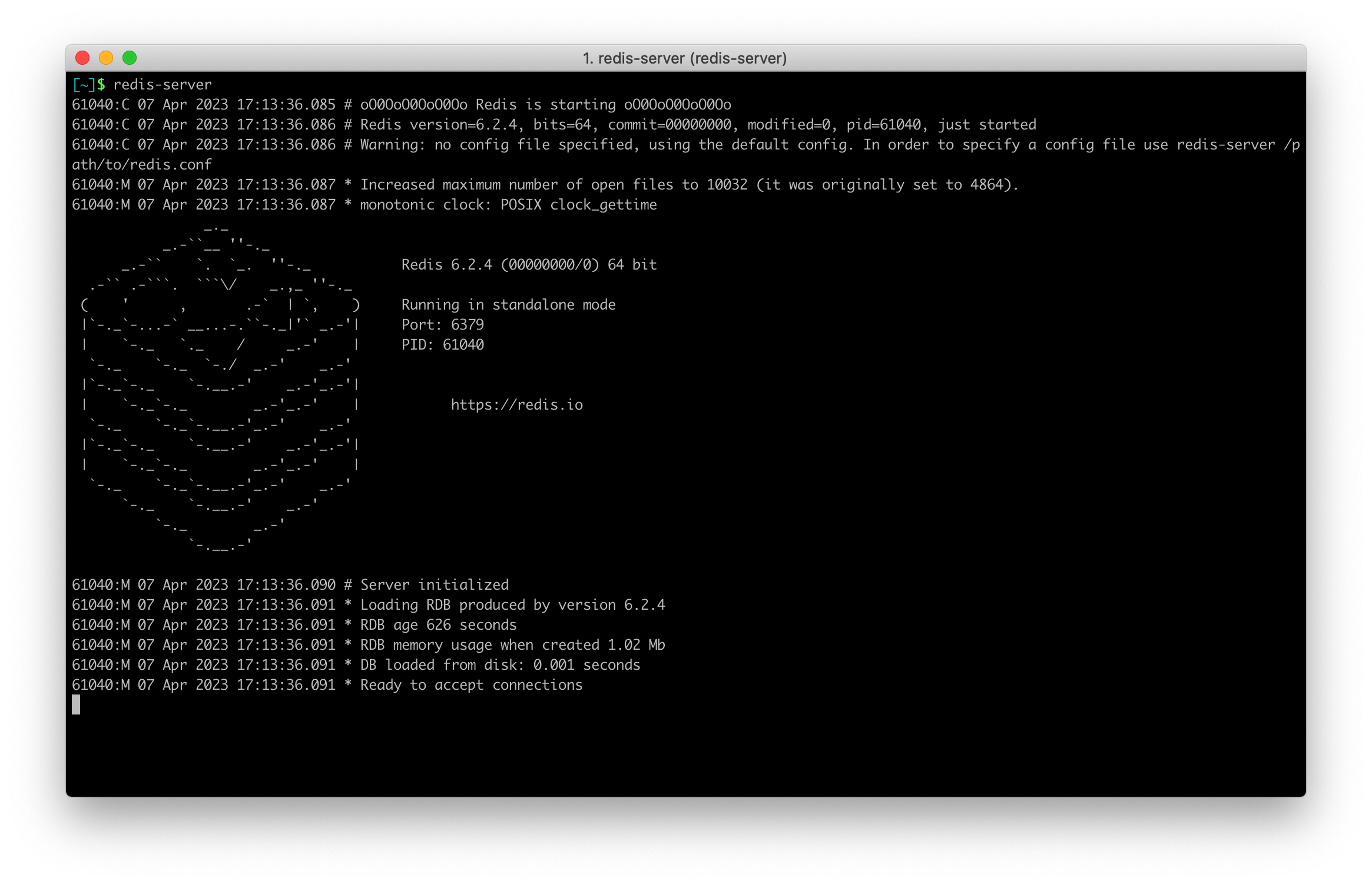 redis-server启动成功之后,可以看见如下状态: